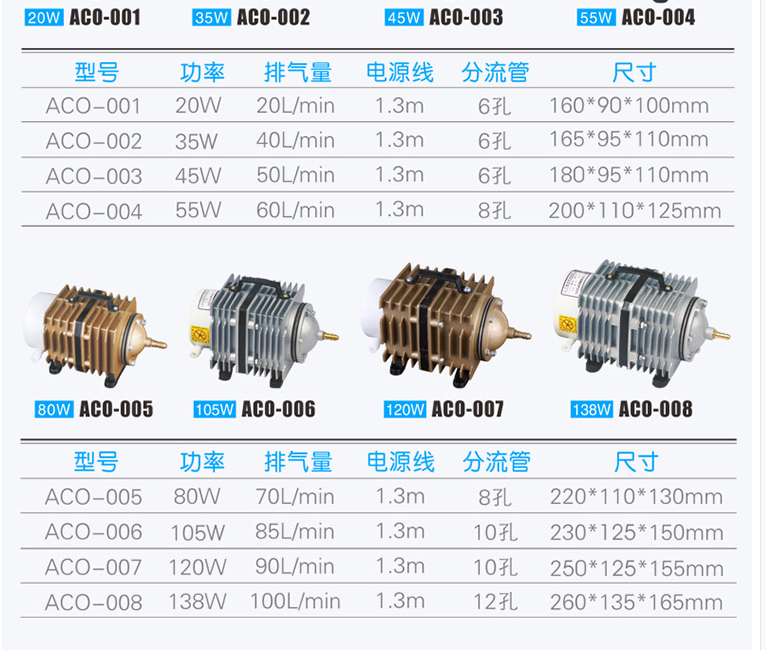 ACO-001 ACO-001 single machine 20W001 trachea 12 m sand head 6 stop flow valve ACO-002 single machine 35W002 trachea 15 meter sand head 6 stop flow valves ACO