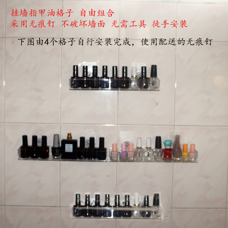 4-layer wall-mounted nail polish rack Strong incognito adhesive nail 1 2-layer wall-mounted nail polish rack(with side plate) 3-layer wall-mounted nail polish rack (with side plate)single grid wall hanging 3 5cm inner width single grid wall hanging 4