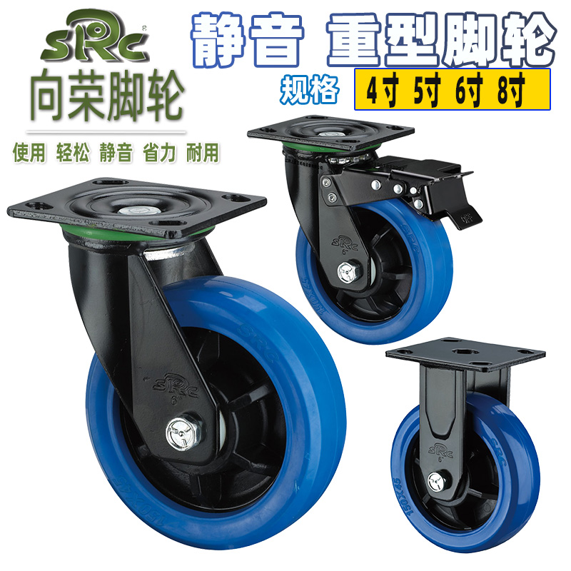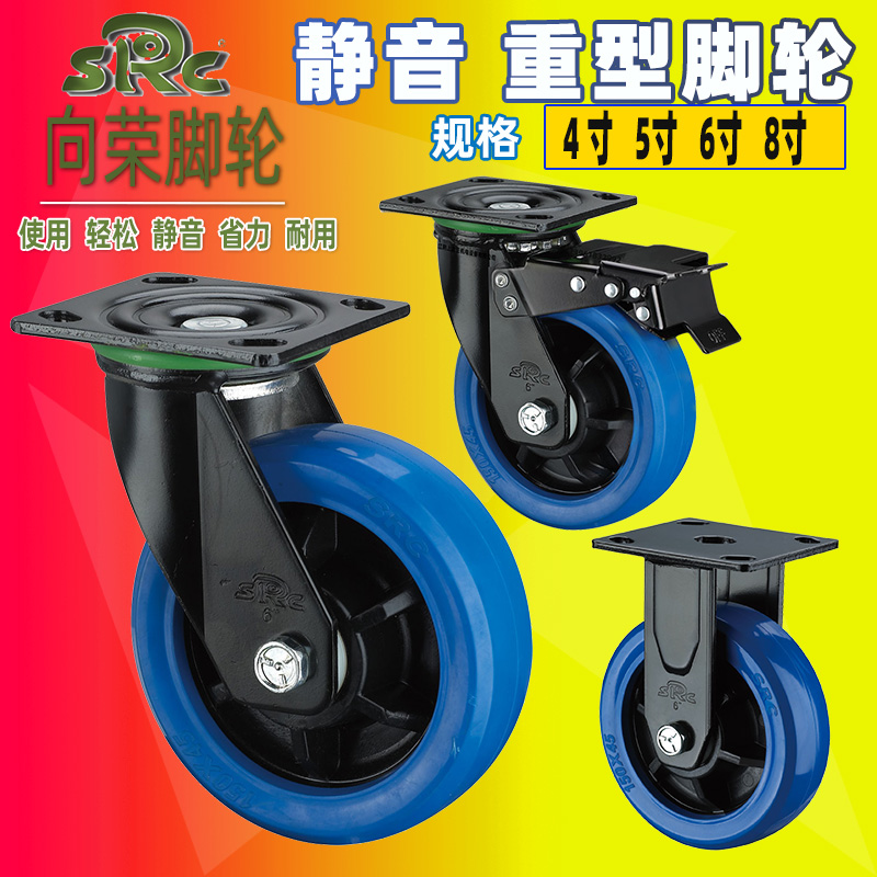 SRC Xiangrong caster 4 5 6 8 inch UPO soft rubber wheel universal wheel silent brake wheel silent heavy duty