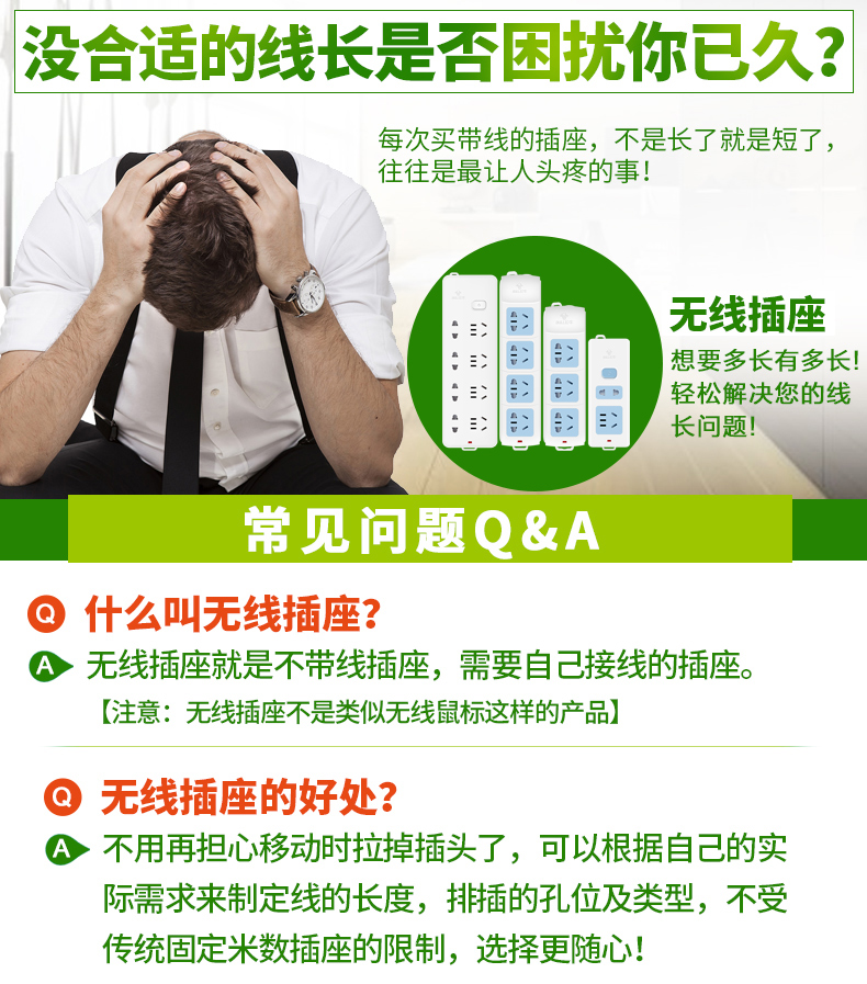 Bull wireless socket Independent switch plug row Household without wire Self-wiring board without power cord Multi-purpose plug board