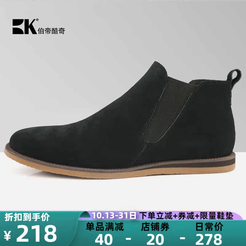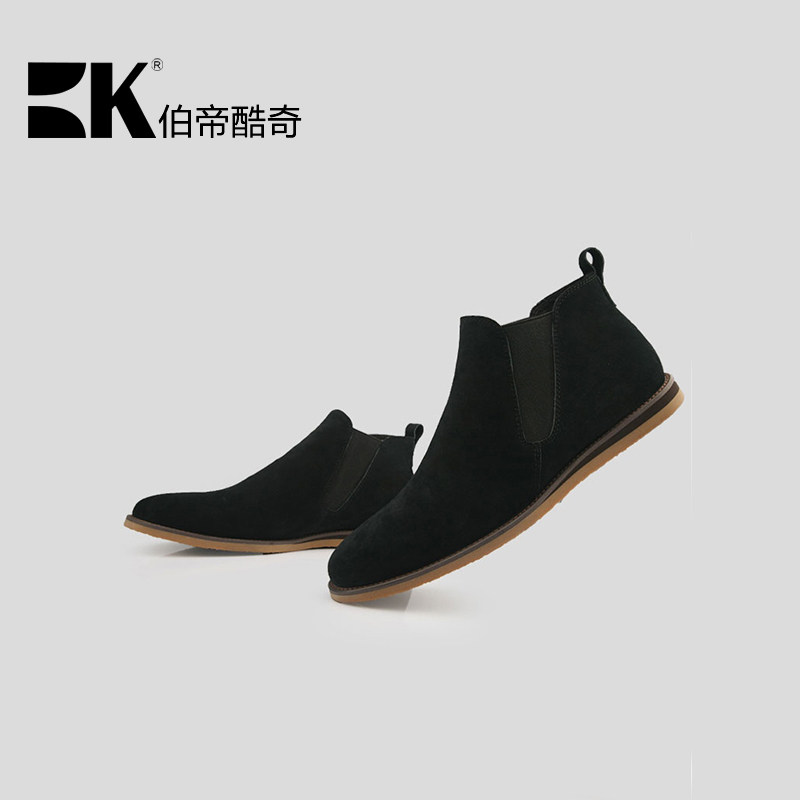 Bodi Kuqi British casual high-top leather shoes Men's trendy elastic band business men's shoes Autumn nubuck leather shoes