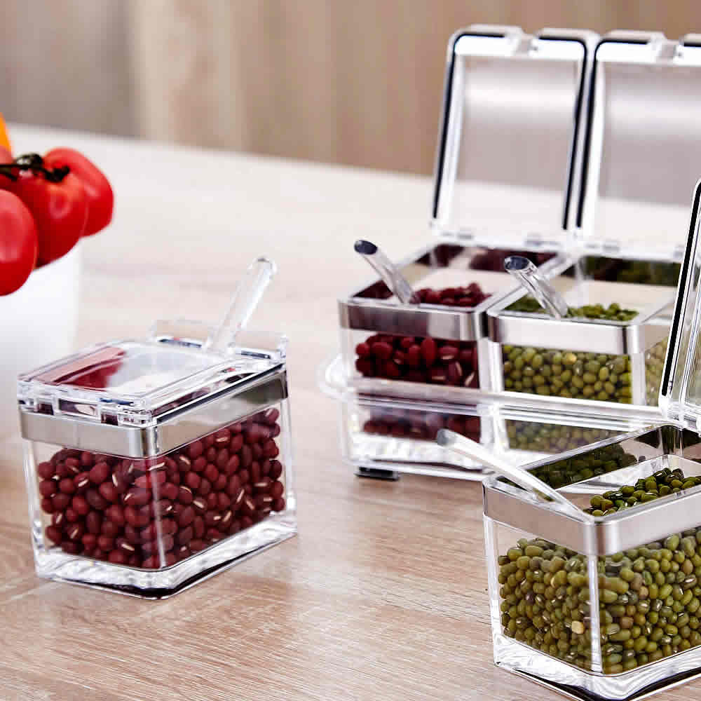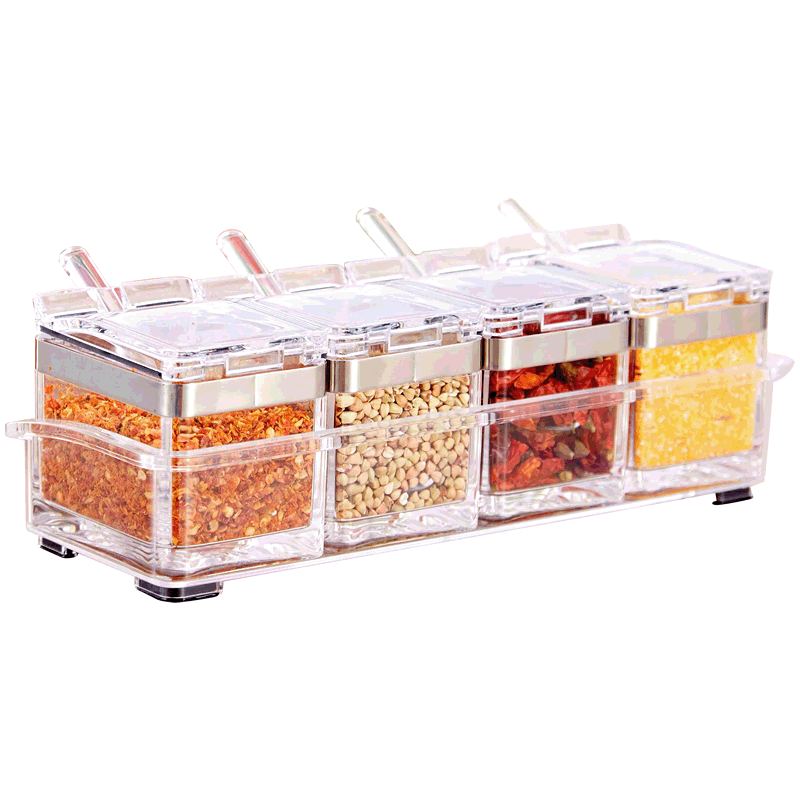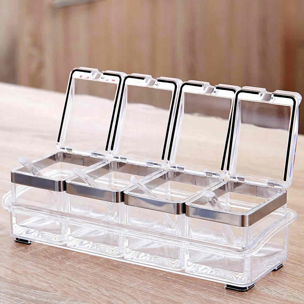 Acrylic seasoning box set household combination four-compartment one multi-compartment kitchen salt tank salt monosodium glutamate seasoning jar bottle