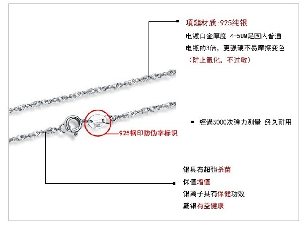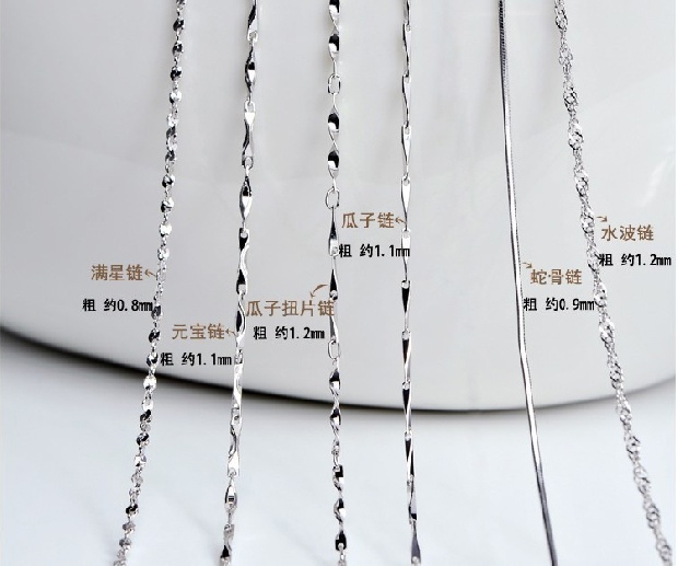 45CM water wave chain 1 2mm (pure silver 1 1mm 40CM melon sub chain (pure silver) 1 1mm 45CM melon seed chain (pure silver) 1 6mm 40CM