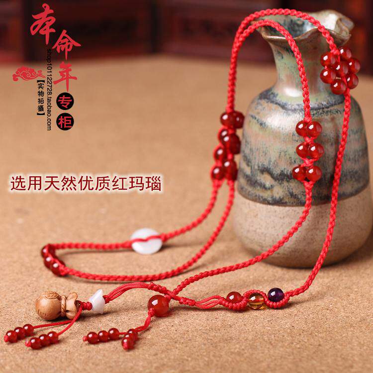 Peach wood money bag natural red Manau red rope waist chain red belt waist rope Ben life ornament Men and women