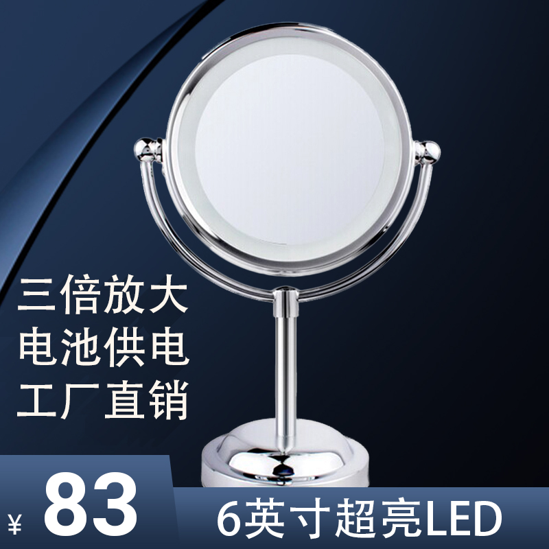 6 inch LED makeup mirror magnification 3 times Desktop lamp mirror double-sided makeup mirror beauty mirror with lamp mirror Battery single use