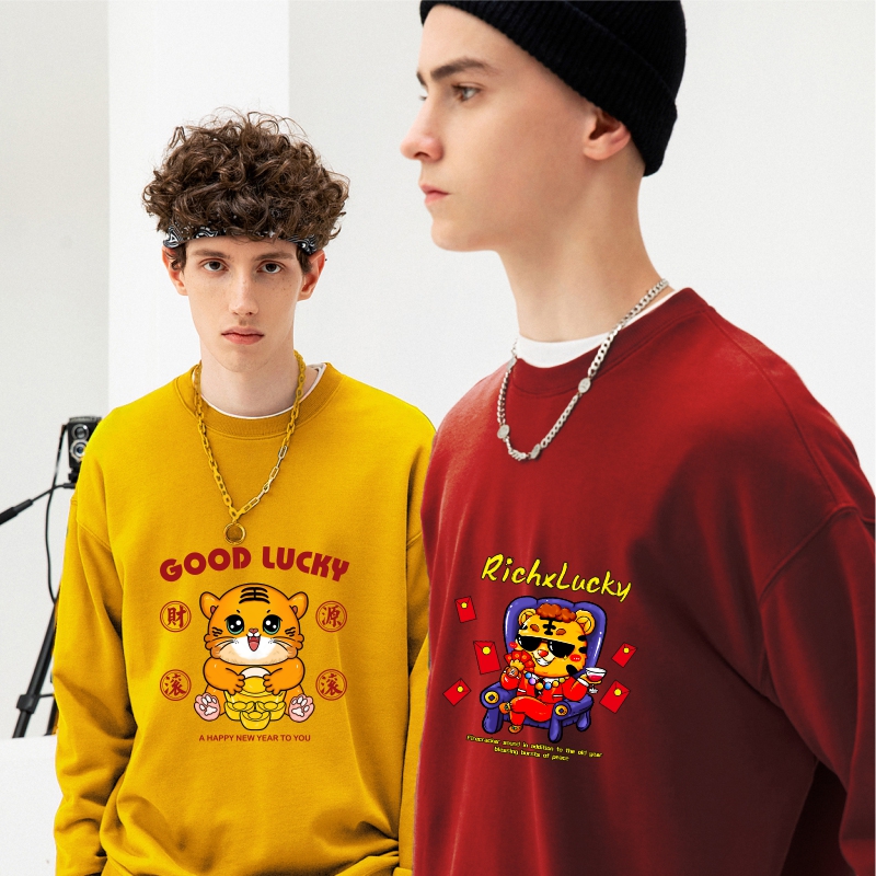Sweatshirt Custom New Year sweatshirt compliment Fortune Tiger Year Red Plus Suede Long Sleeve Christmas Lovers Dress Girlfriends