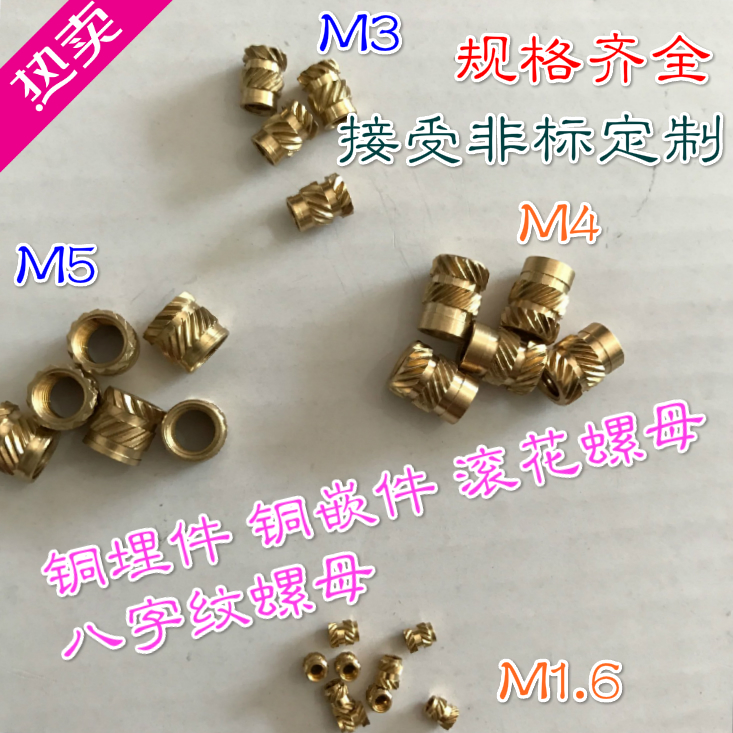 Injection copper nut double oblique flower injection molding embossing hot melt copper embedded parts copper inlays M1 6-M2