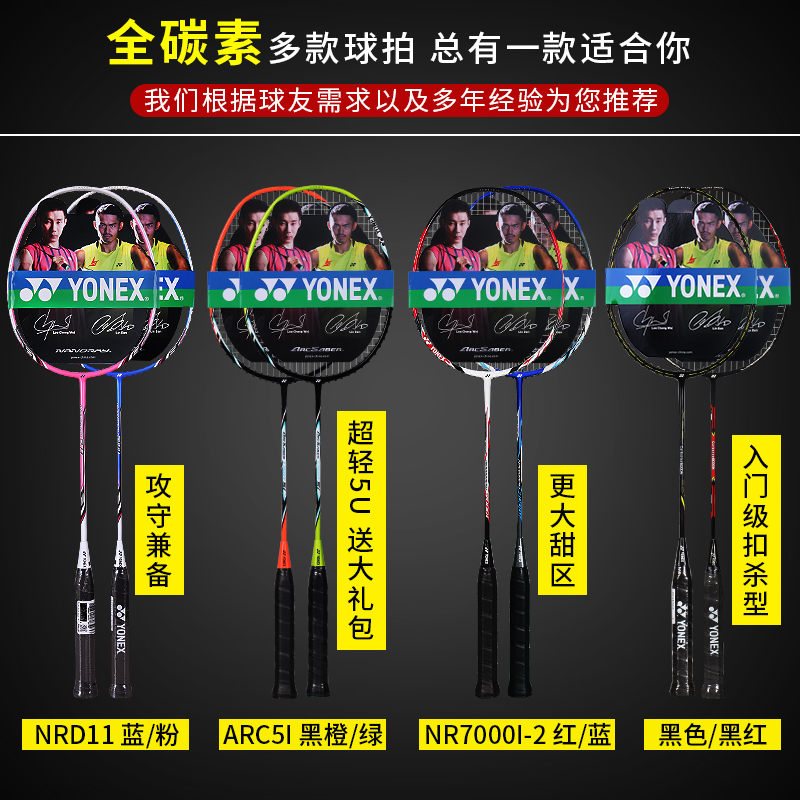 2-pack official Yonex badminton racket full carbon ultra-light durable anti-hit type double-shot student racket