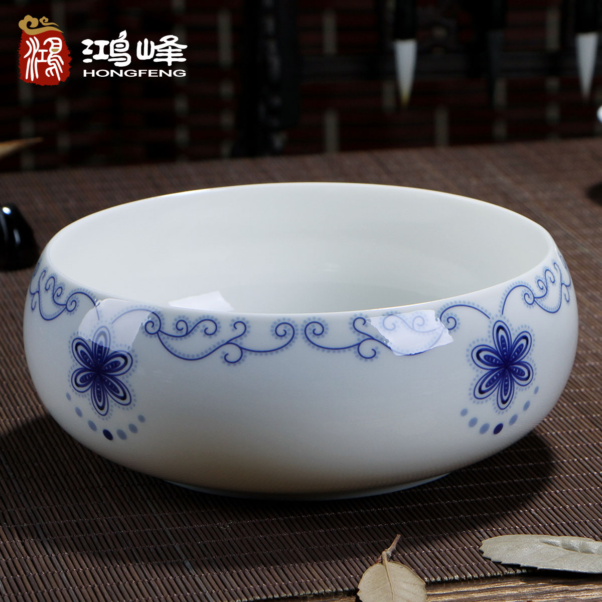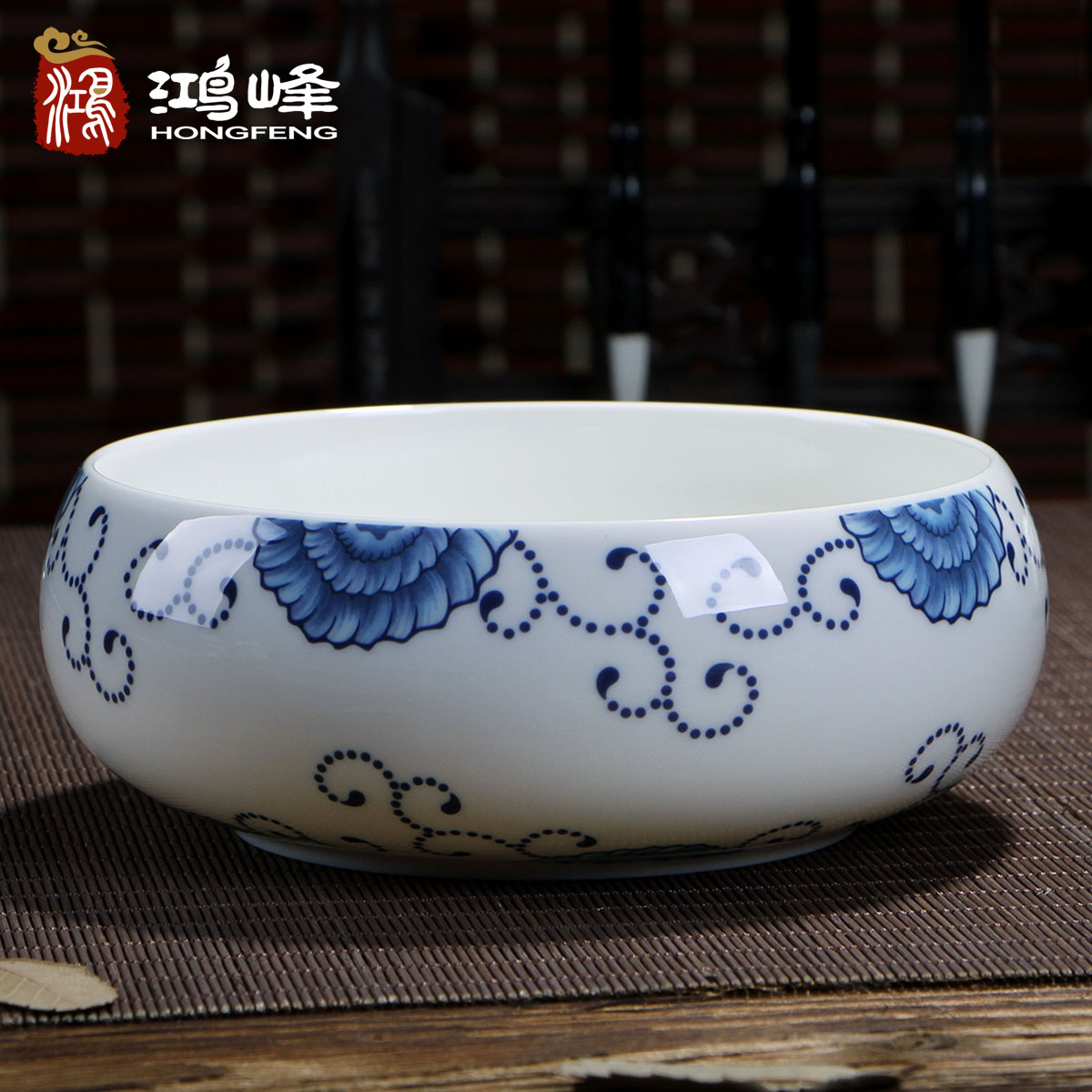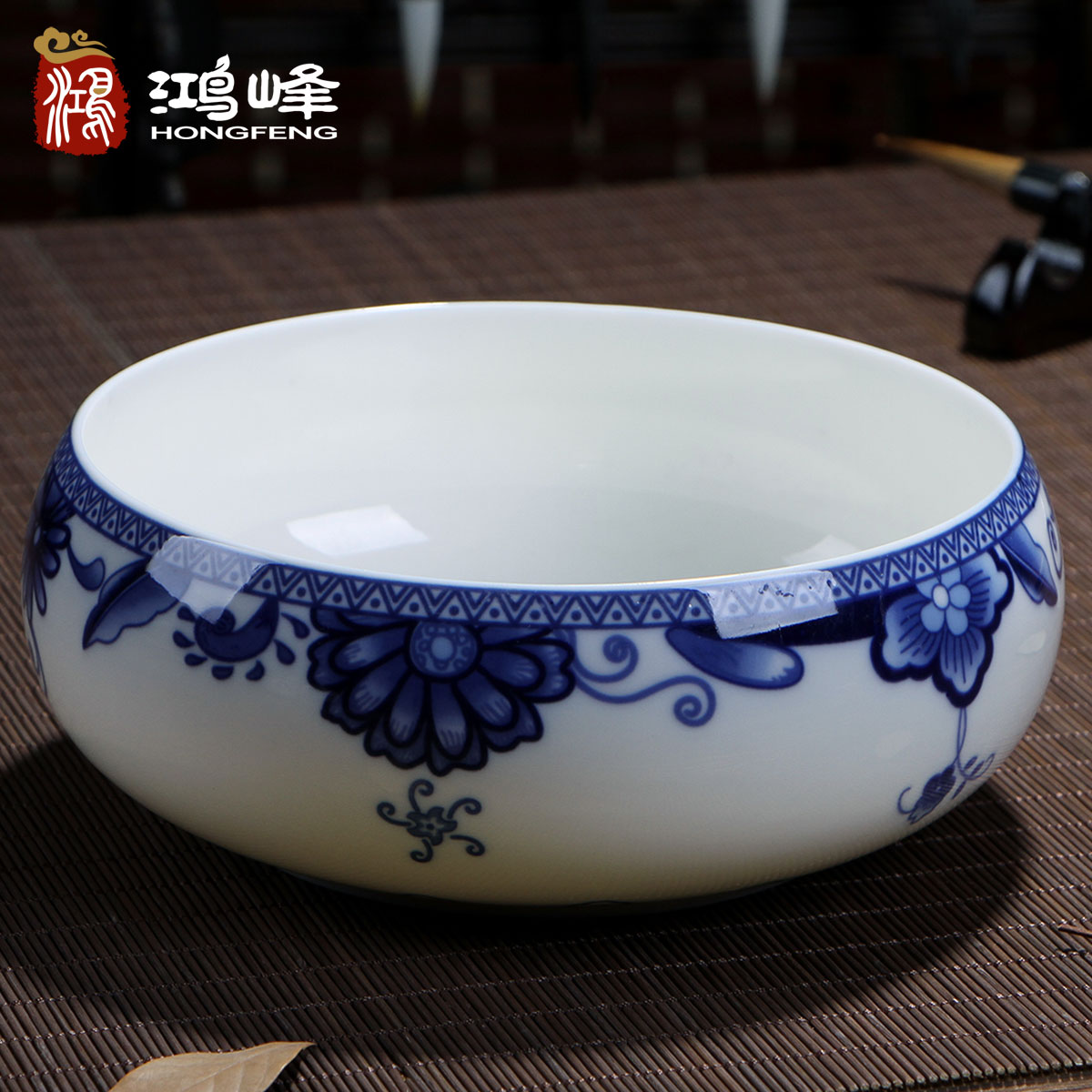 Green Flower Porcelain Tea Wash Large Ceramic Water Spittoon Wash Pen Wash Vat Tea Set Accessories Tea Dao Tea Bowl Put Tea Cup Basin Home