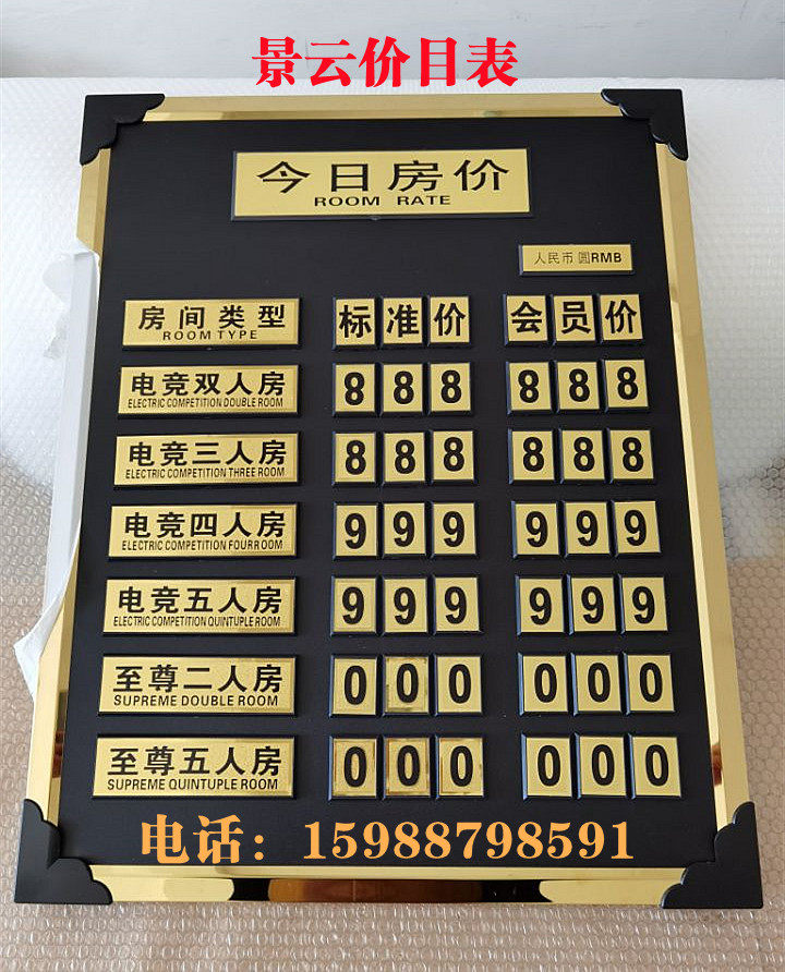 Custom hotel Hotel room rate card Today's room rate card Price card price list Today's room rate