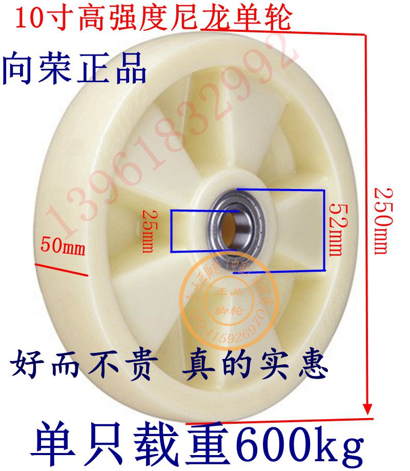 10 inch double 6205 bearing nylon single wheel wear-resistant high load trolley wheel SRC Xiangrong caster wheel PA