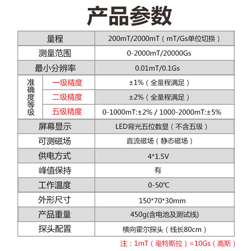 Weite Digital Gaussian Meter 0.1GS Milli Tesla Meter Permanent Magnet Residual Magnetic Instrument Surface Magnetic Field Tester WT103