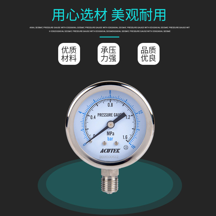 ACUTEK 304 stainless steel pressure gauge Y60BF 1.6mpa M14 * 1.5 high-temperature ammonia pressure gauge