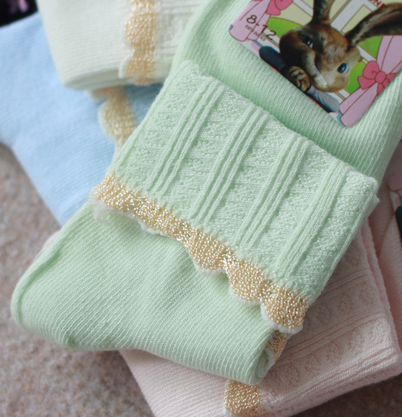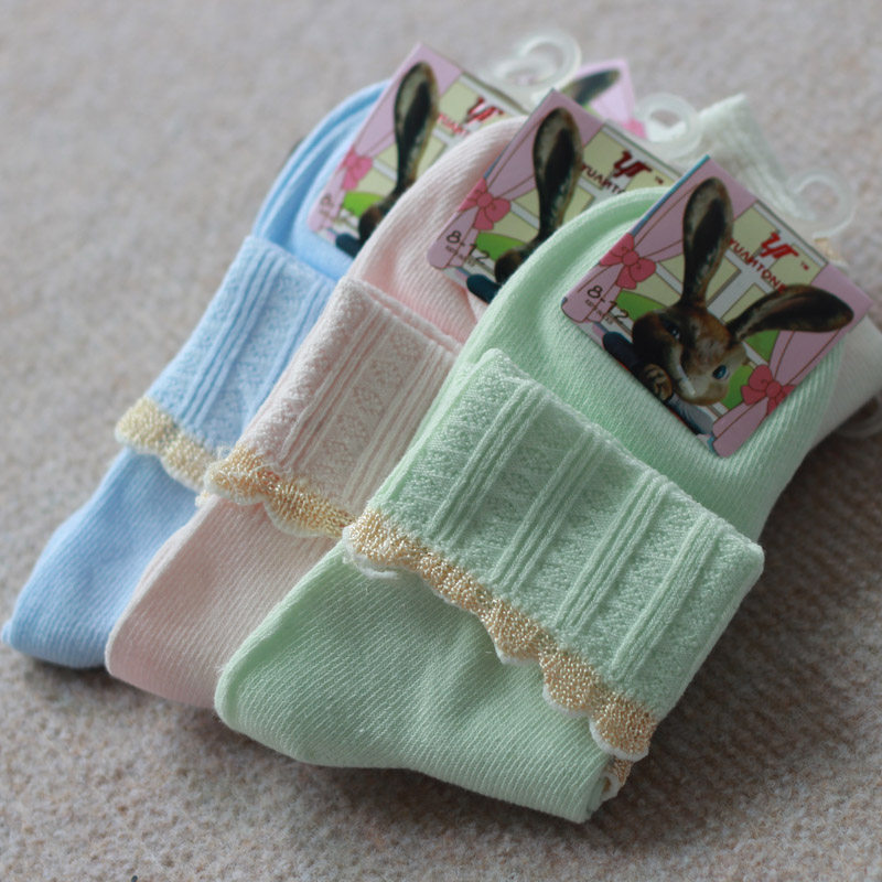 Promotion Spring Fall Creative Lace Full Cotton Combi Cotton Gold Silk Side Pure Cotton Curl Princess Girl Children Socks