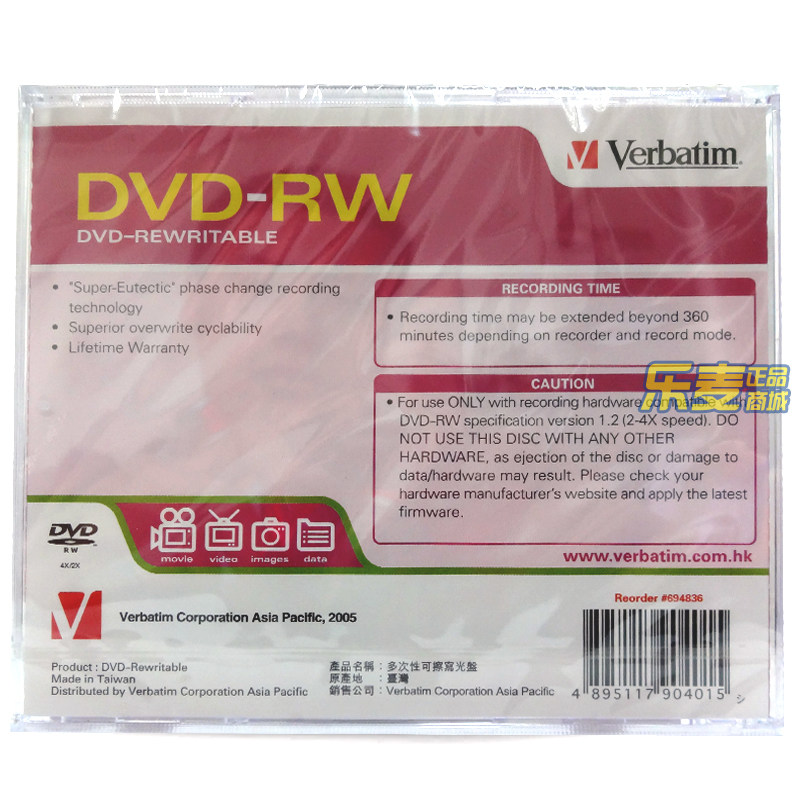 Table production hot selling VerbatimDVD-RW 4X can be repeated one thousand times wiping and DVD burning CD CD ROM box loading single