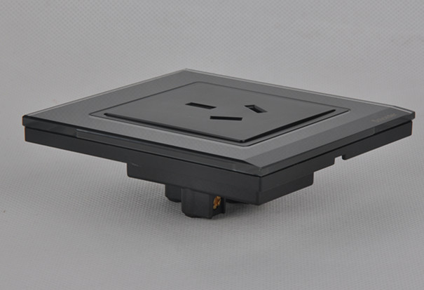Type 86 S12 black tempered glass 16A three-hole 3-hole three-eye air conditioning socket high power power wall panel