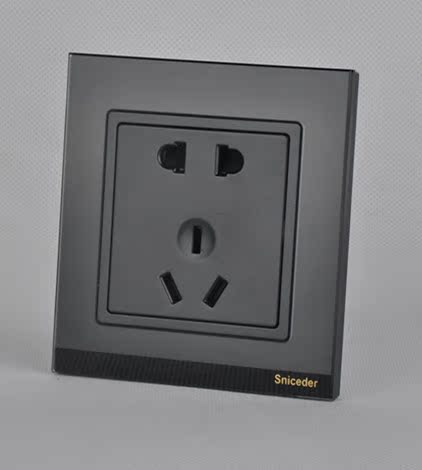 Type 86 power supply wall switch panel S12 black tempered glass socket Five holes 10a Two-three-three-eyes