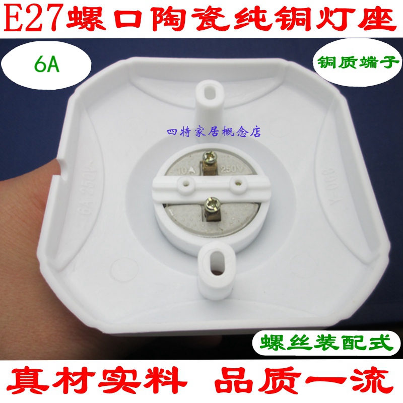 Thickened high temperature resistant ceramic lamp holder E27 screw mouth lamp holder pure copper 6A flat lamp holder flat lamp disc square lampshade