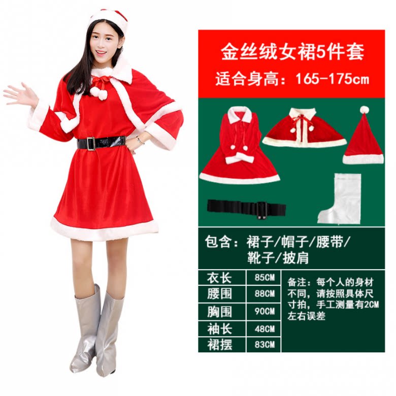 Christmas Old Man Clothing Adult Women Gold Silk Suede Christmas Hat Shawl Long Sleeve Skirt Suit Performance Clothes 6 pieces of clothing