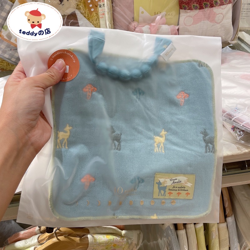 A single saliva towel with three clipsPink bears with three clipsBlue bears three with clipsGrey bears with three clipsBlue camels with two clipsWhite three clips with clips b