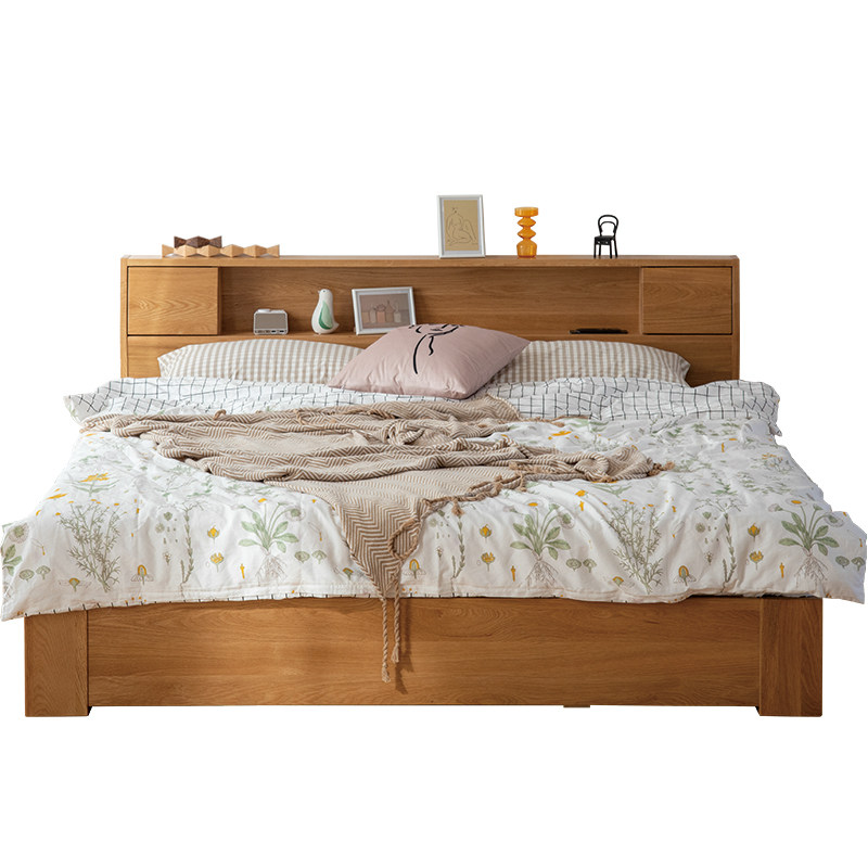 Ya Stack) Japanese-style bed Full solid wood 1 8m1 5 1 2 1m storage box bed White oak double widened bed