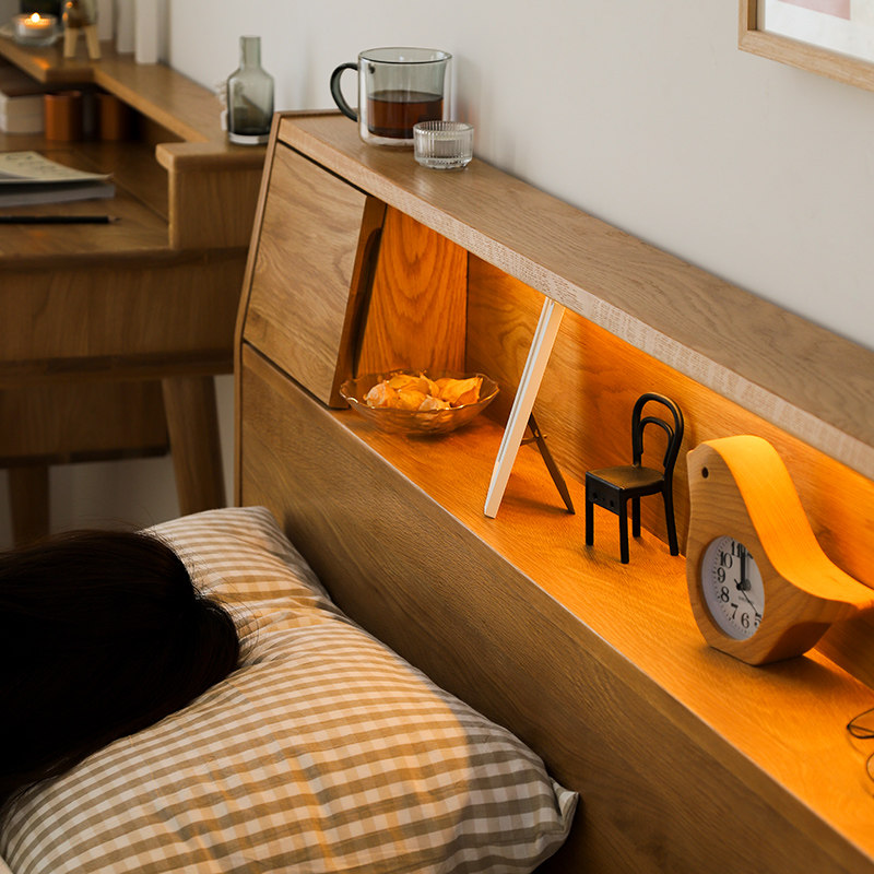 Upgraded air pressure model with lamp(bedside height 95cm)White oak drawer bed(bedside height 82cm