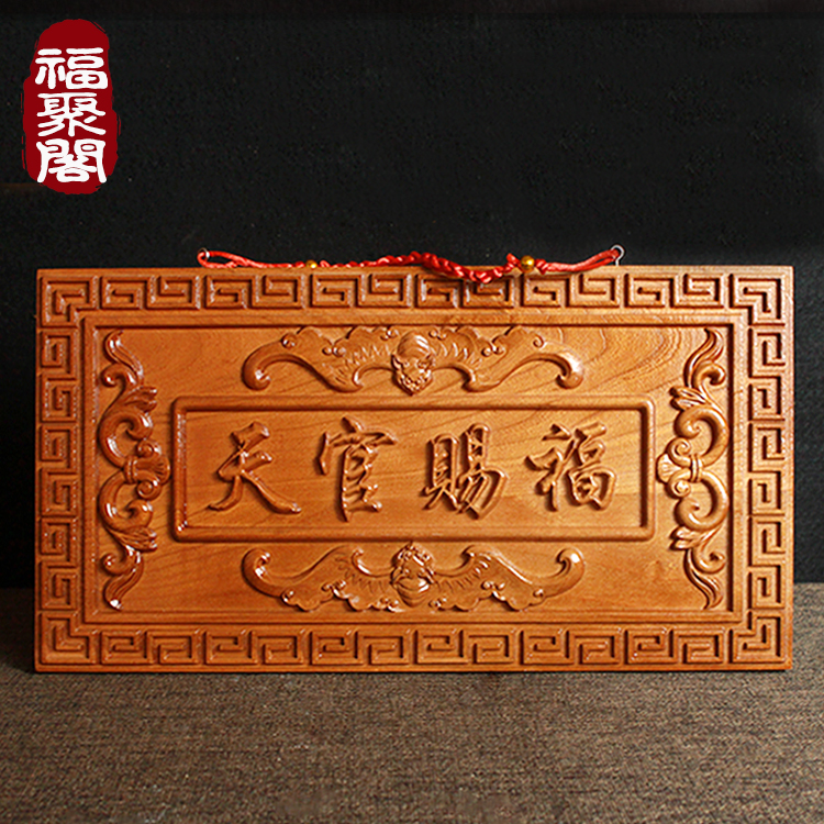 Peach and wood Tianguan Blessed Door Signs with Gossip Town Residence Swaying Pieces to dissolve the door to door wood Carved Doorway Pendant