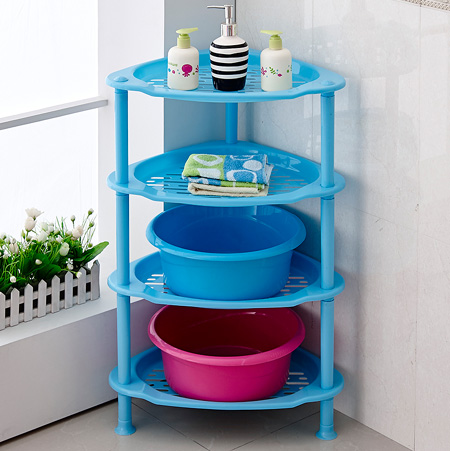 Bathroom Shelving MAKEUP ROOM FACE BASIN RACK BATHROOM PLASTIC TOILET STORAGE CONTAINING LAYER SHELF TRIANGLE FLOOR
