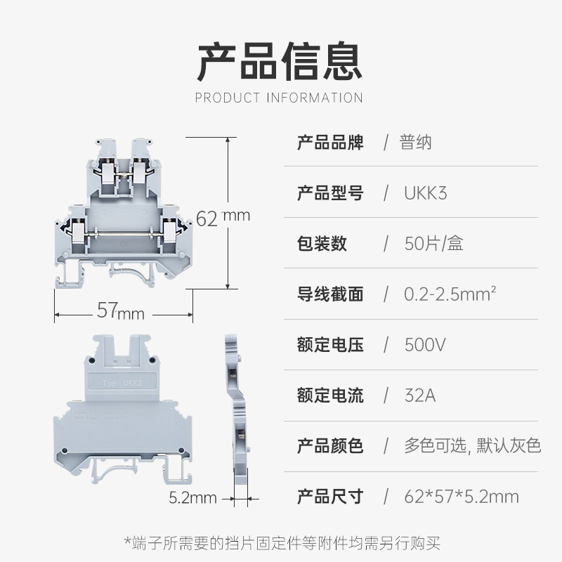 Pune brass UKK3 double terminal terminal row 2 5 square binary binary two rail voltage terminal ukk2 5