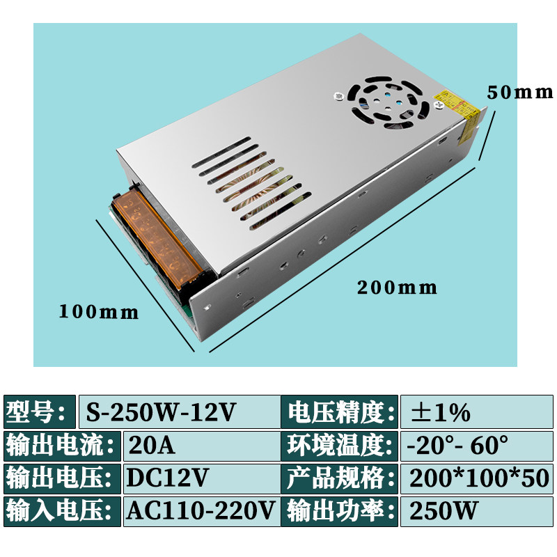 Hongming power supply S-250-12 monitoring transformer 220 to dc12v20a power supply connector DC power supply 12V