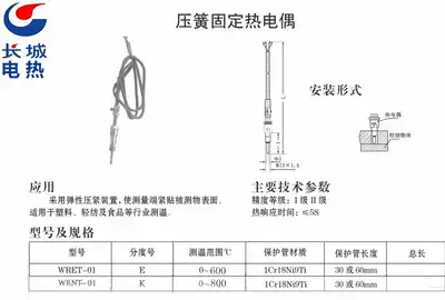 Injection molding machine barrel spring sensor pressure buckle type temperature catch-up type K-type thermocouple WRNT-01
