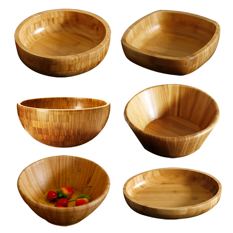 Bamboo Round Salad Bowl Creative Home Fruit Plate Dried Fruit Bowl Japanese Korean Western Restaurant Tableware Bamboo Bowl Bamboo Plate
