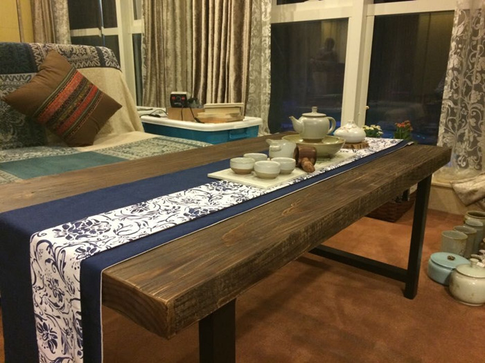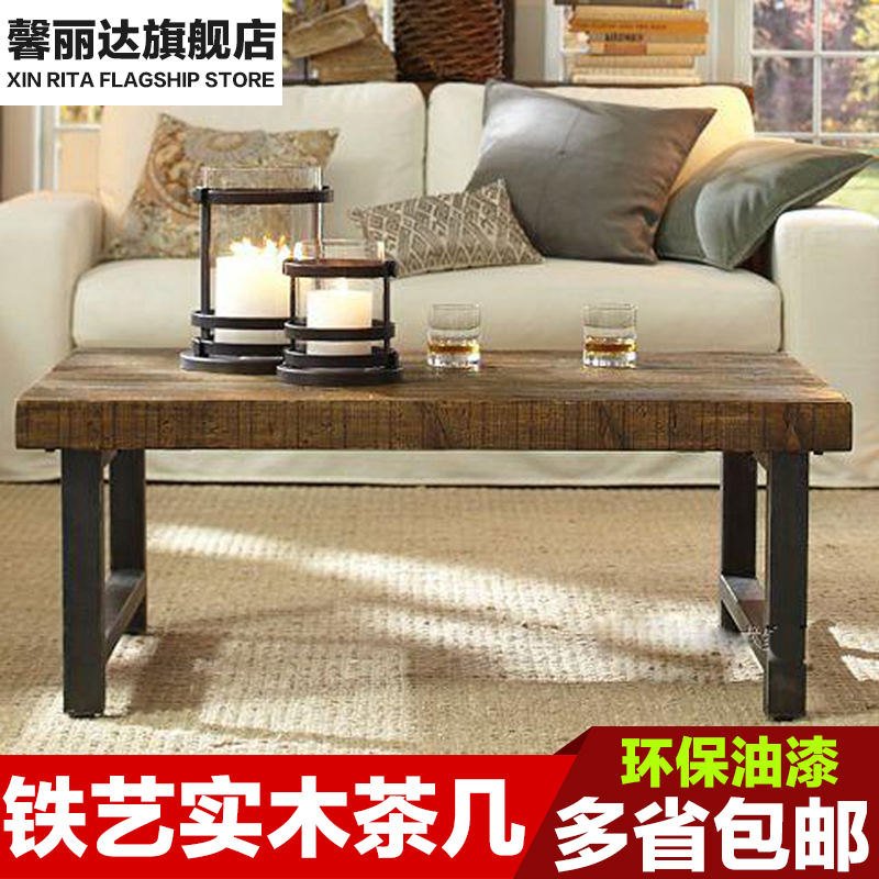 Custom European retro Mediterranean coffee table Simple European Nordic antique old rectangular Wrought iron solid wood coffee table simple