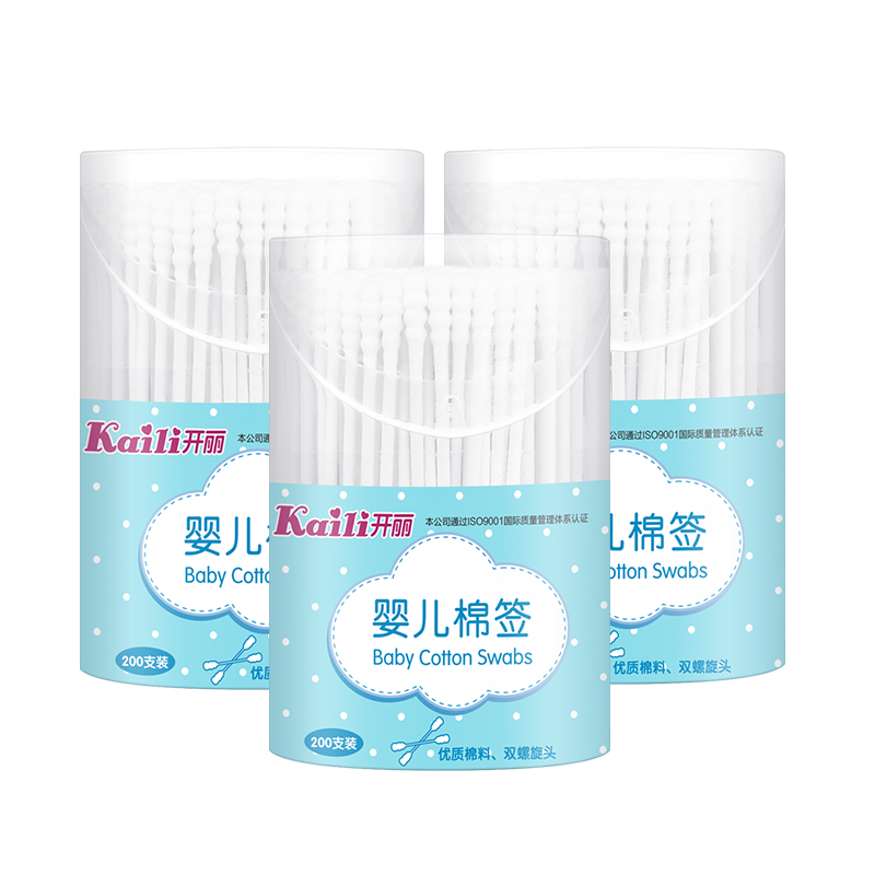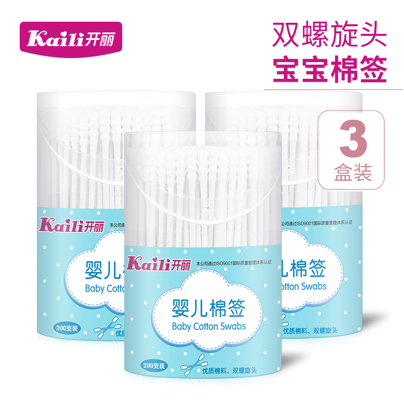 Kaili baby cotton swab newborn ear and nose baby special fine shaft cotton swab disposable double helix 200 * 3 box