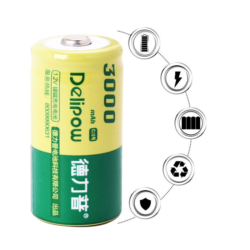 Delipu No 2 2-cell rechargeable Battery M Type C 1 2V No 2 Rechargeable 3000 mAh for R14 LR14