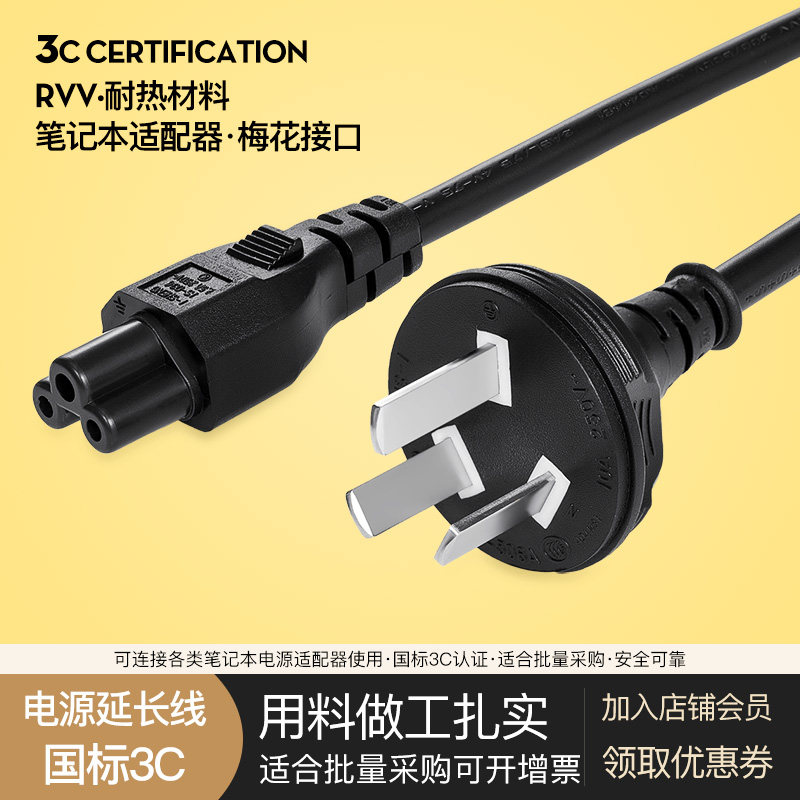 Notebook power cord Lenovo HP Dell computer adapter Plum tail plum head three-hole wire plug wire
