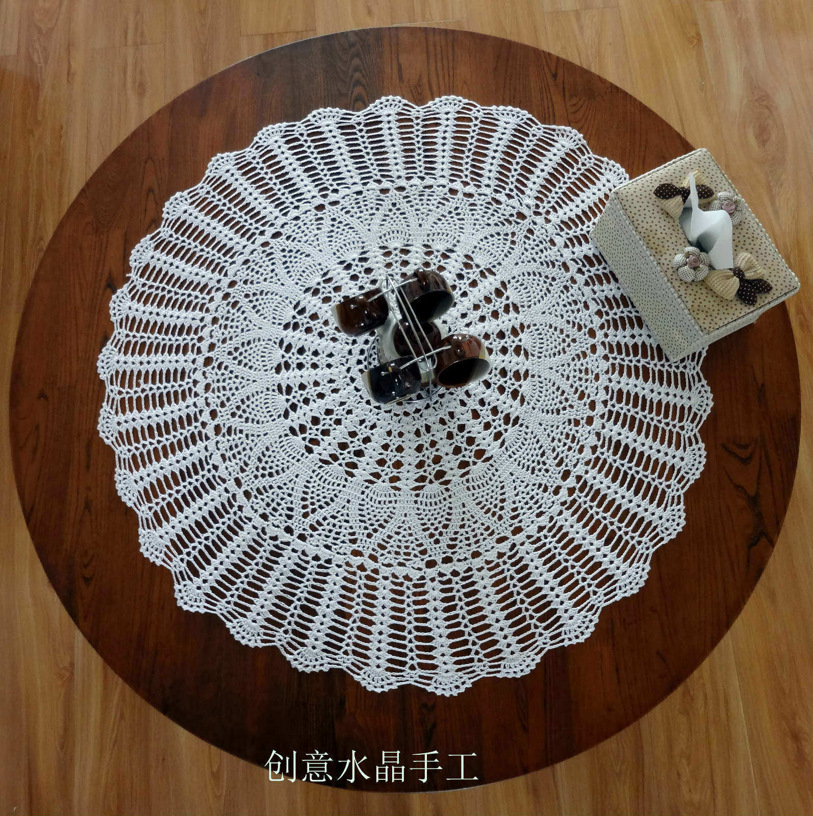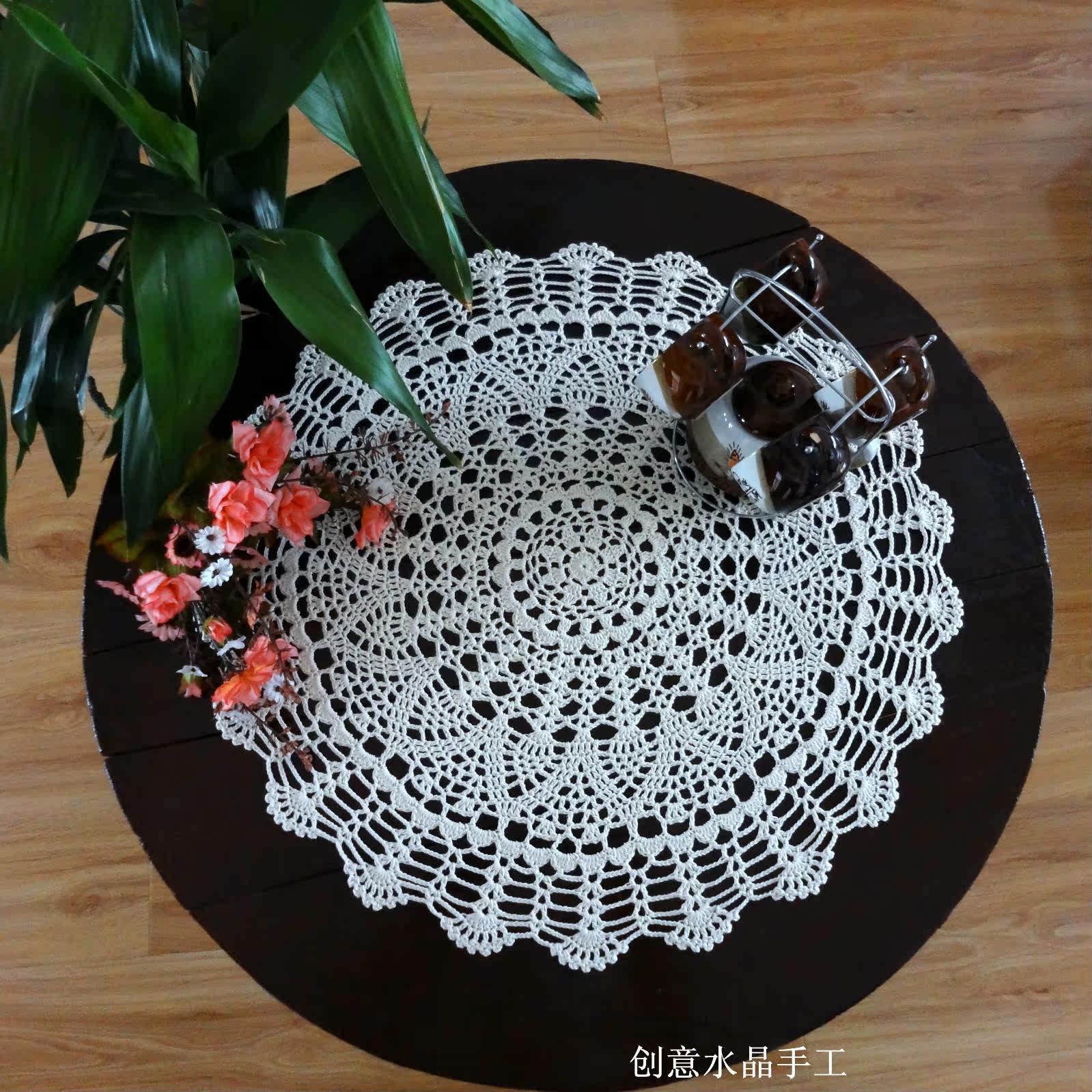 Creative crystal pure handmade crochet hook cotton lace Hollow woven tablecloth cover cloth decorative cloth Beige towel