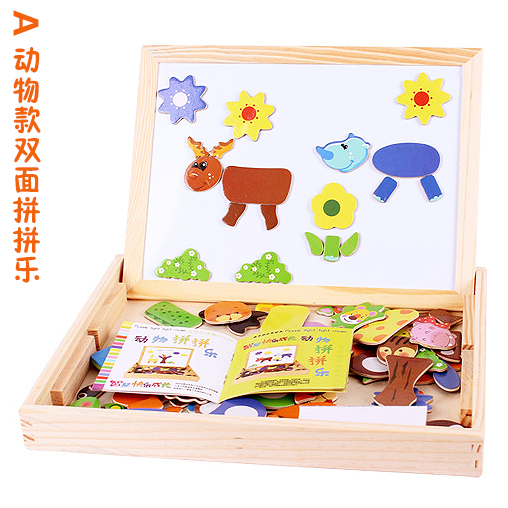 Wood Balls Parquet Collalotte Bifacial Magnetic Jigsaw Puzzle Bifacial Large Blackboard Whiteboard Magnetic Writing Board Drawing Board Toy