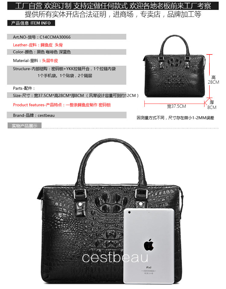 cestbeau with password lock crocodile leather handbag men's bag leather business briefcase European and American fashion 21 new