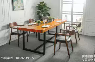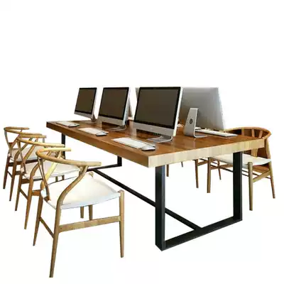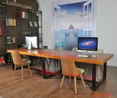American large conference table solid wood desk iron negotiation table retro computer desk desk table table Workbench