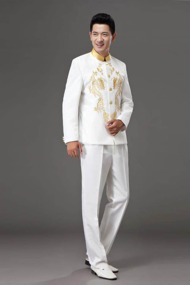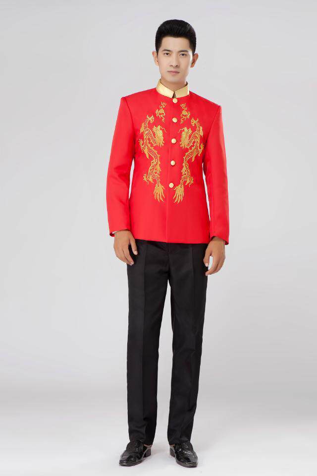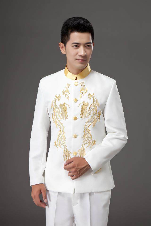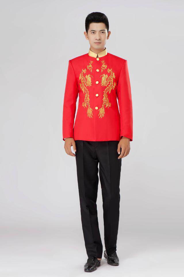 New style Zhongshan suit Republic of China youth dress embroidered dragon stand collar suit host emcee singer perform stage costume