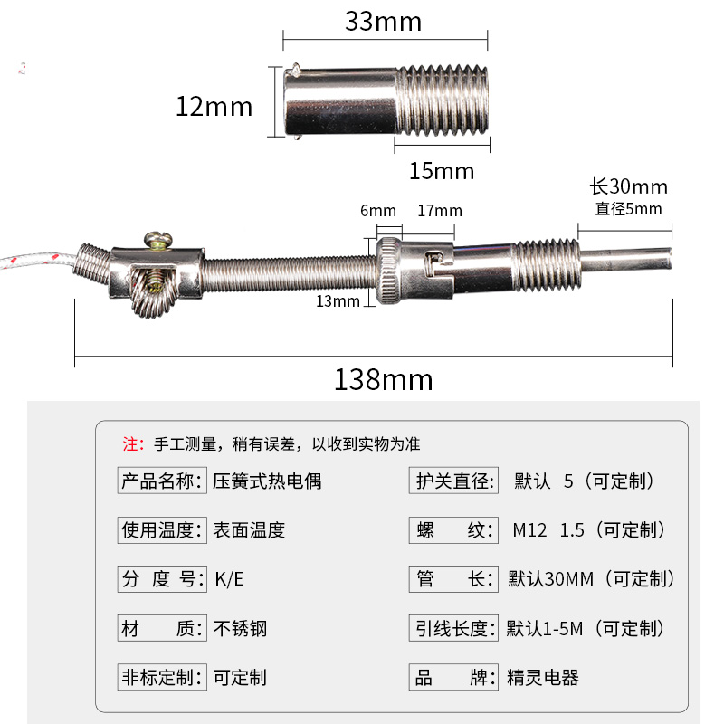 Spring-type thermocouple K type E line thermometers monitor temperature sensor fast thermometric catch-up high temperature induction needle