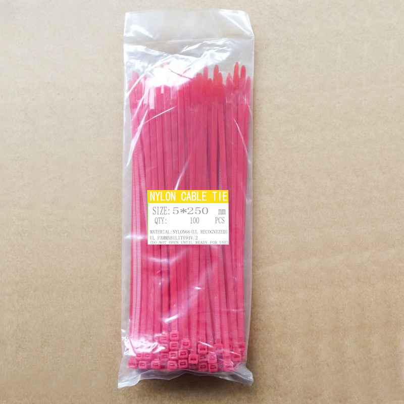 Plastic eco-friendly nylon tie beamline with bundled high temperature resistant 5 * 250mm 100 strips of red blue-green yellow wholesale