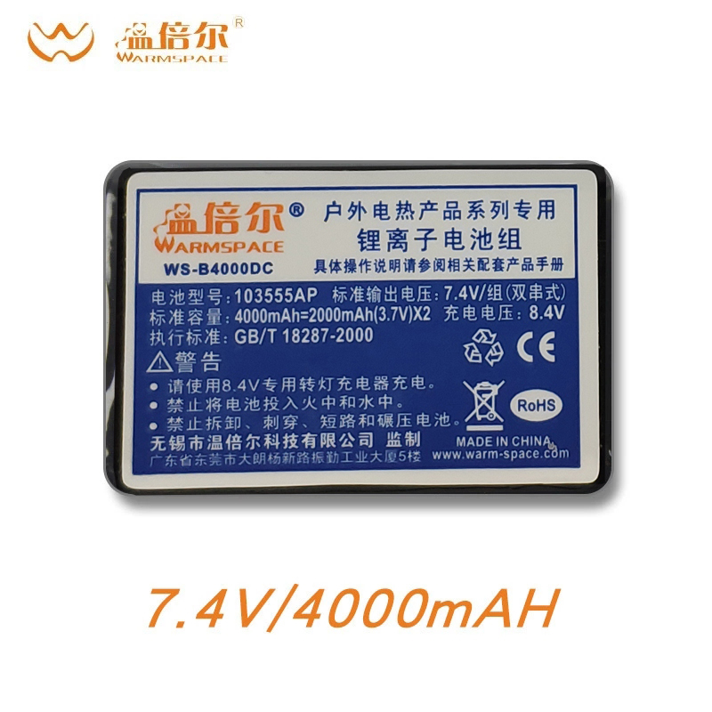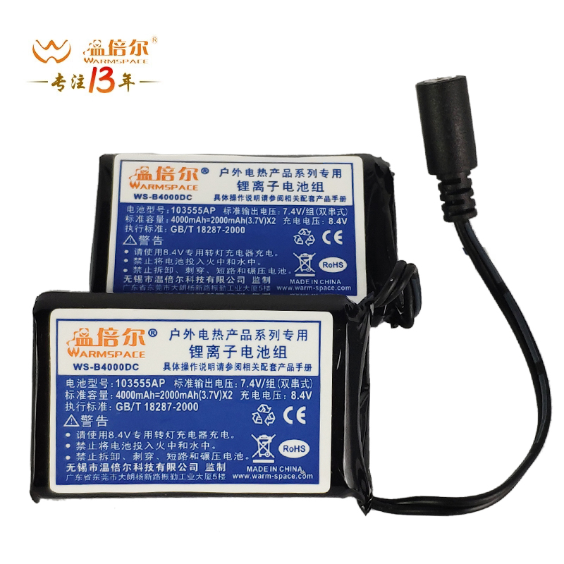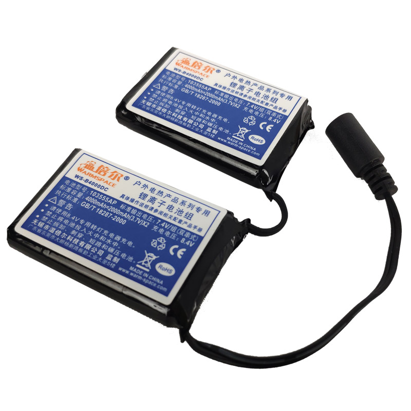 Wimbe electric heating glove battery split double string 4000MAH polymer lithium battery 7 4v DC3513 female