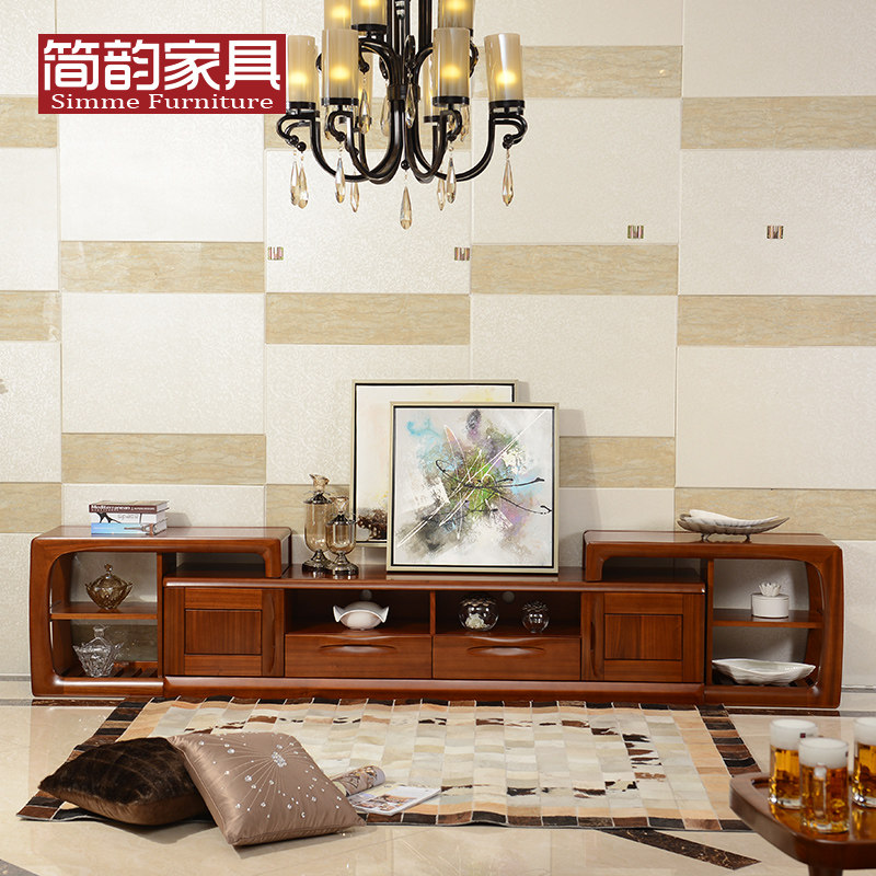 Simple Rhymes Full Wood TV Cabinet Brief Modern New Chinese Guest Hall Furniture Composition Film & TV Cabinet Teak Ground Cabinet-Taobao