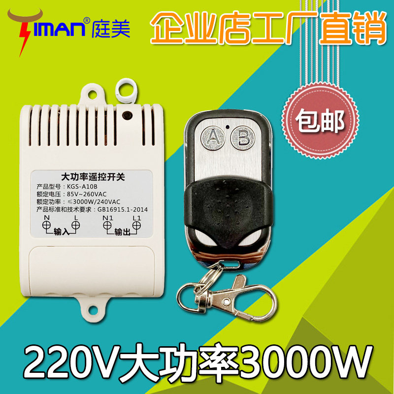 High-power wireless remote control switch 220V single-channel 30A relay output with metal 2-button remote control