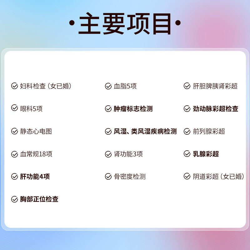 Cervical Blade Internal Medicine Tumor Marker Bone Density Blood Lipids Blood Glucose Women's Surgery Vision Color Liver Cholmid Pancreas Color Super-Breast Color Super-Clitoral Color Super Gynecological Examination White Band Routine