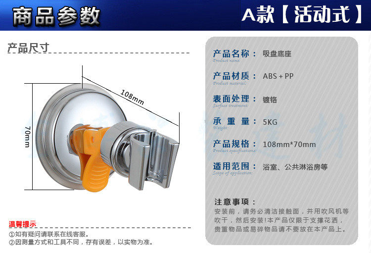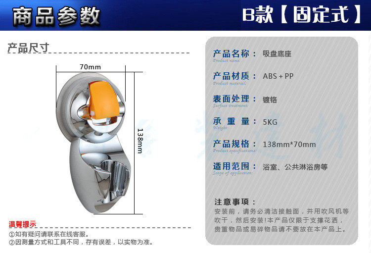 No punching powerful suction cup type universal adjustment shower rack hand spray nozzle fixed bracket shower wall seat base