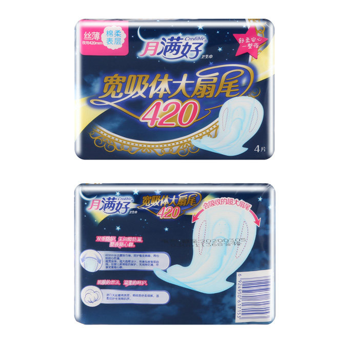 Month full of sanitary cotton ultra-thin ultra-long cotton mass night with extra-large 420 cotton soft and skinny fan tail Aunt towel 8 bag