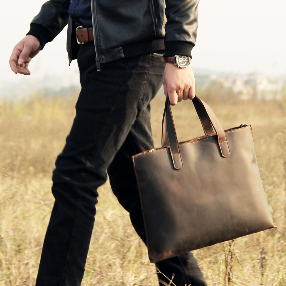Original Mad Mapi Men's Bag Retro Genuine Leather Briefcase Handmade Single Shoulder Bag Handmade Head Layer Cow Leather Skew Satchel Bag